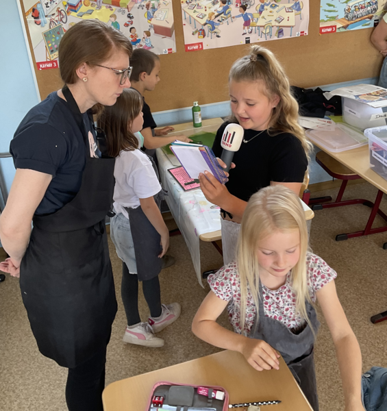 Beim Kunstfest Görsbach haben Kinder der 4. Klasse an einem Tag als Reporter und Reporterinnen das Geschehen an ihrer Schule dokumentiert und kleine Beiträge aufgenommen, die allen Teilnehmenden am Nachmittag in der Aula direkt präsentiert wurden. Wir unterstützen Kids in der Umsetzung von Dokumentationen und Interviews und stärken schon Grundschulkinder im Umgang mit Medien, Technik und ihrer Selbstdarstellung.